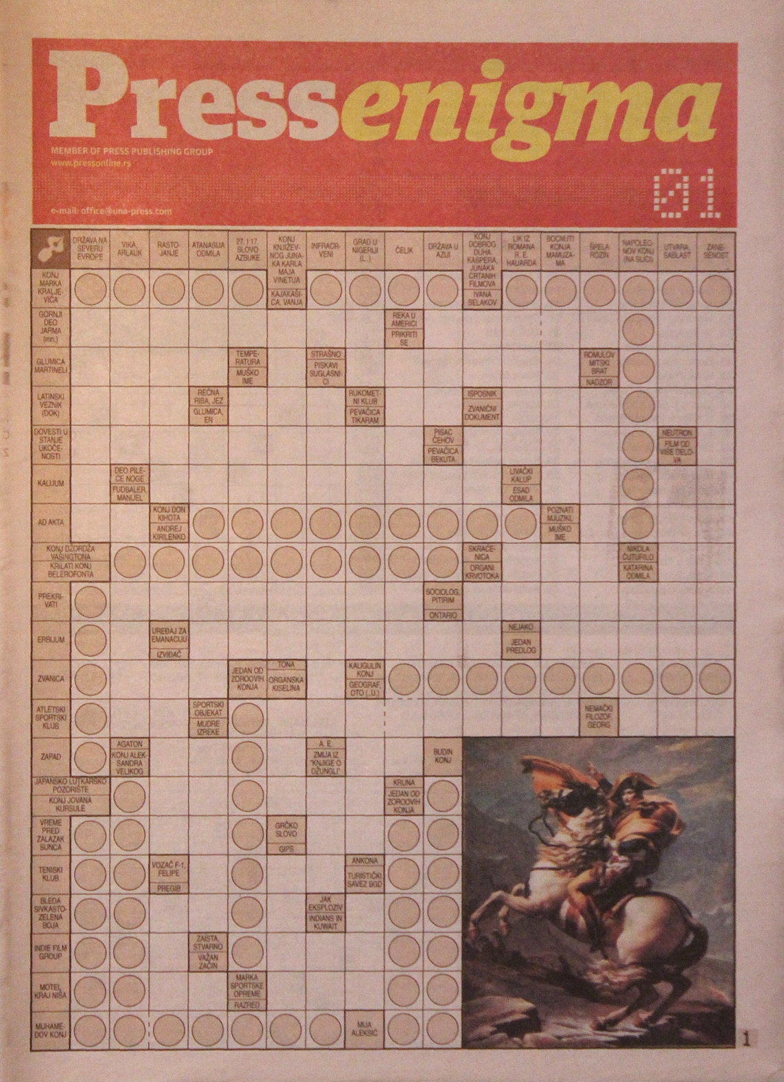 Enigmatski dodatak je izlazio u dnevnom listu "Press" jednom nedeljno na osam stranica.
